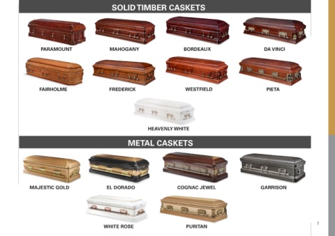 SOLIDTIMBER CASKETS PARAMOUNT MAHOGANY BORDEAUX DA VINCI FAIRHOLME FREDERICK WESTFIELD PIETA HEAVENLY WHITE METAL CASKETS MAJESTIC GOLD EL DORADO COGNAC JEWEL GARRISON 1 WHITE ROSE PURITAN
