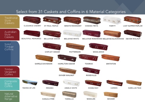 Select from 24 Caskets and Coffins in 4 Material Categories