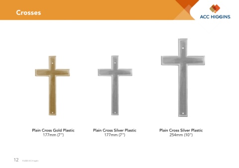 Crosses Plain Cross Gold Plastic Plain Cross Silver Plastic Plain Cross Silver Plastic 177mm (7”) 177mm (7”) 254mm (10”) 12 © 2025 ACC Higgins